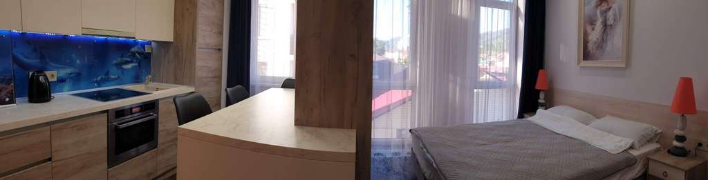 Рядом (200м) в Курортном городке имеется все, необходимое для досуга детей и взрослых (парковая зона, детские площадки, дельфинарий, океанарий, боулинг, бассейн, столовые, кафе, рестораны, магазины, бювет с минеральной водой) .