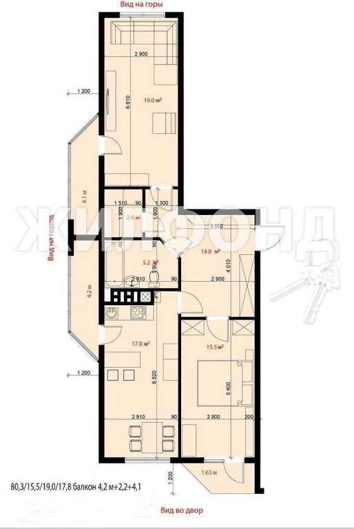 Жилая площадь 53 кв. м, кухня 18 кв. м, внутри евро ремонт, комнаты изолированные, есть интернет и домашний телефон, совмещенных санузлов - 1, лоджий - 1, окна выходят на улицу.