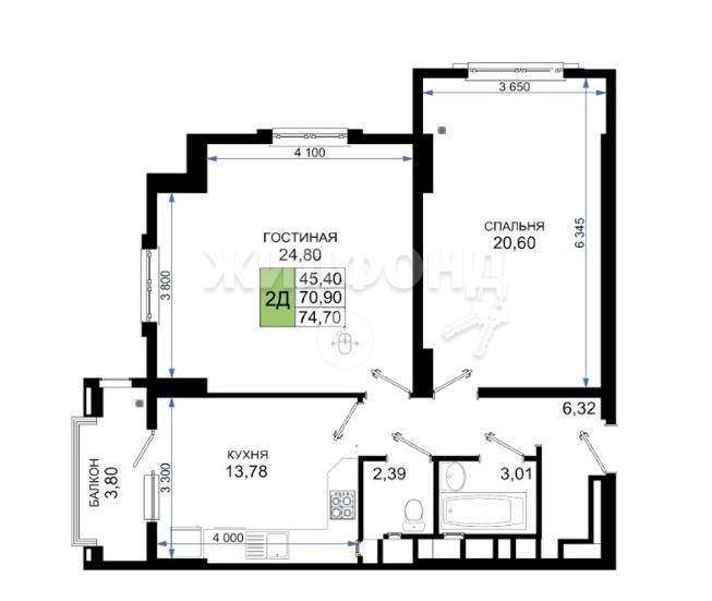 ПРОДАЕСЯ 2-к квартира общей площадью 75.91м2, от застройщика!