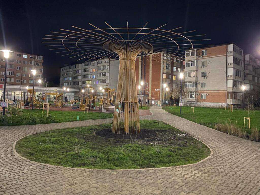 благоустроенный двор с детской и спортивной площадками;