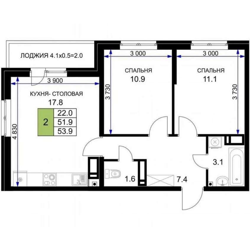 - 52.30 м2