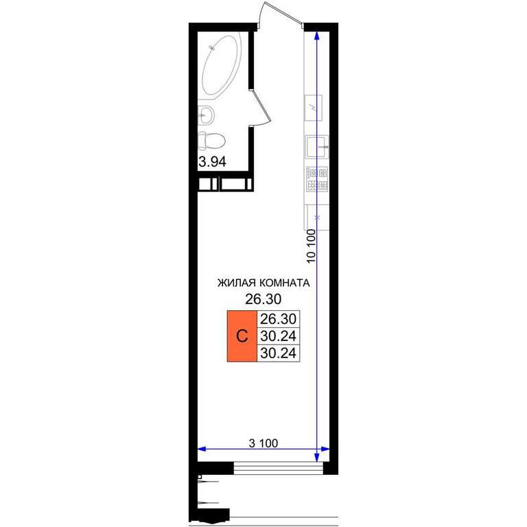 - 26.30 м2