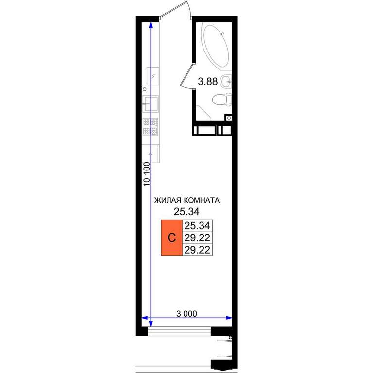 - 25.34 м2