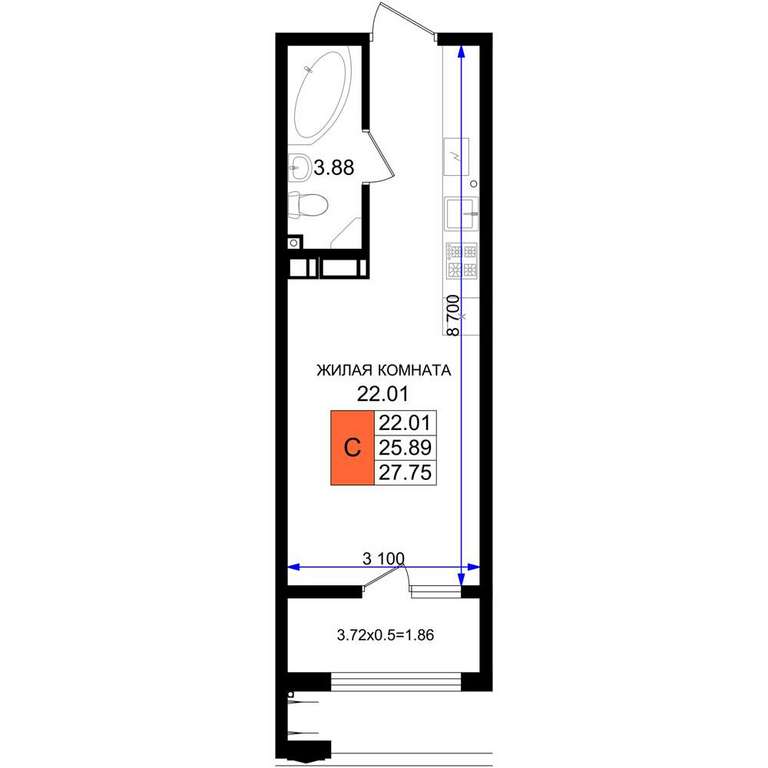 - 22.01 м2