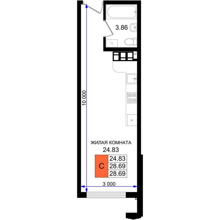 - 28.69 м2