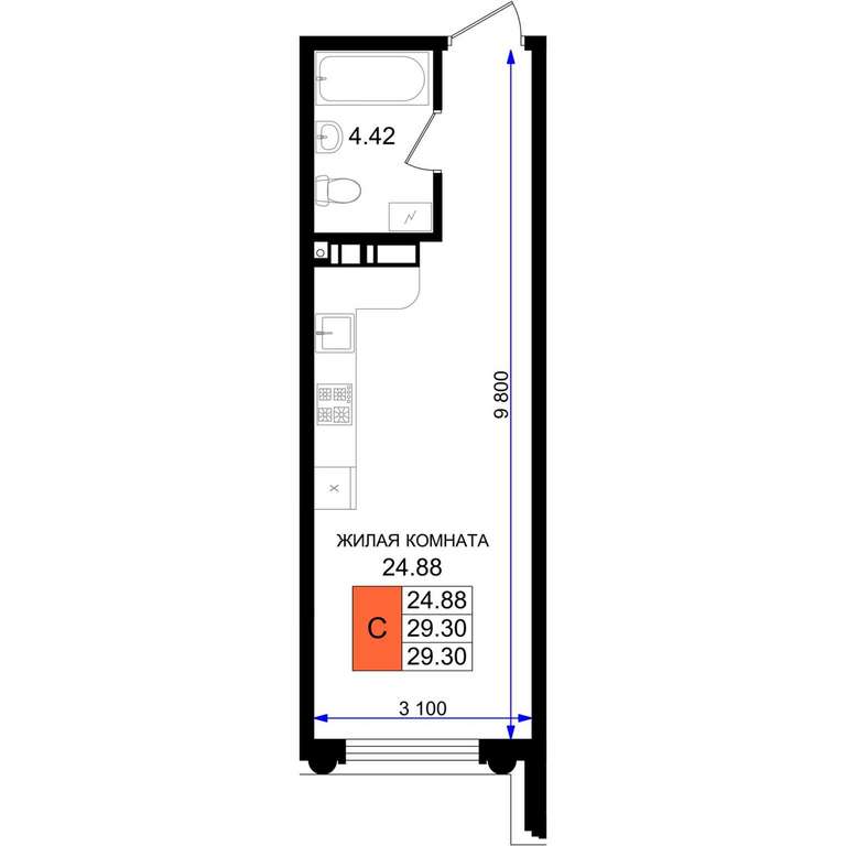 - 24.88 м2