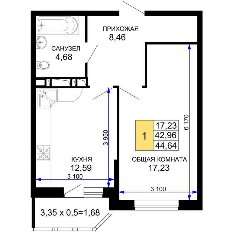 - 17.23 м2