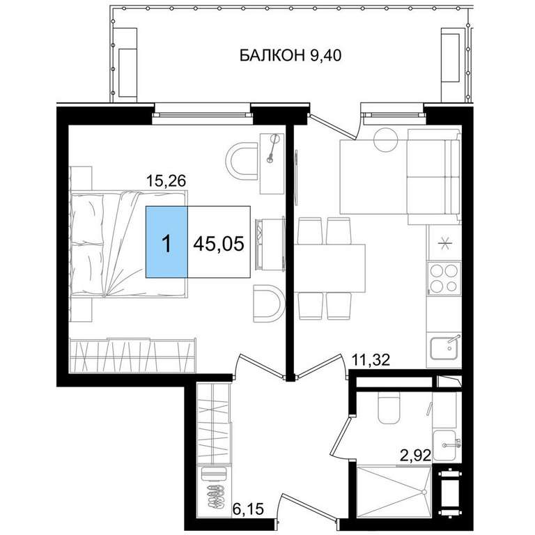 - 45.05 м2