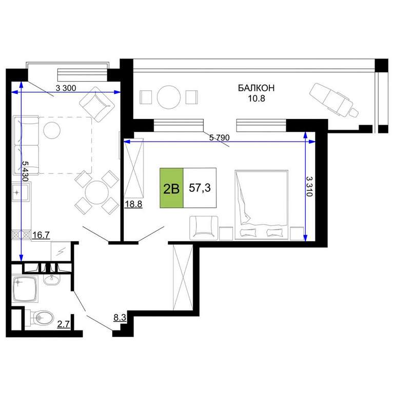 - 57.30 м2