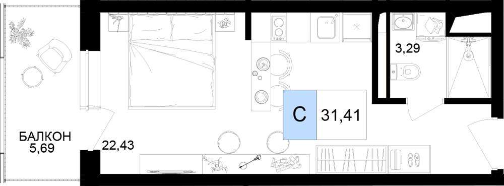Продаются 1 комн. апартаменты-студия, площадью 31.41 м2 в монолитной новостройке. Возможен вариант покупки с использованием ипотечных средств, есть рассрочка, возможна покупка с использованием материнского капитала, есть военная ипотека.
