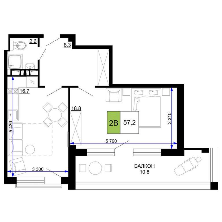 - 57.20 м2