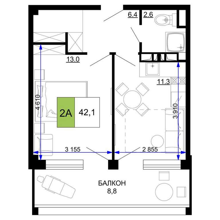 - 42.10 м2