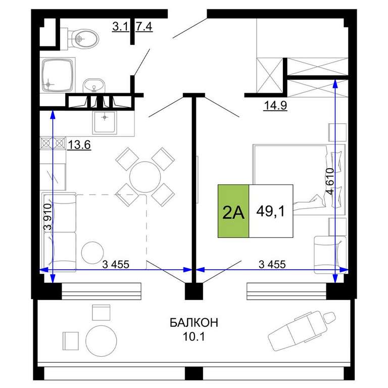 - 49.10 м2