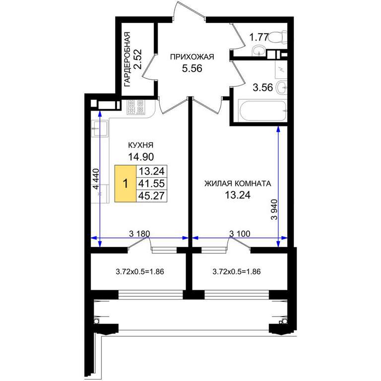- 45.27 м2