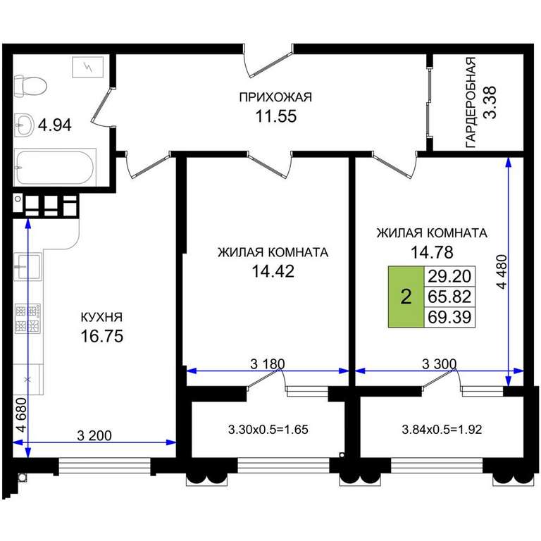 - 69.39 м2