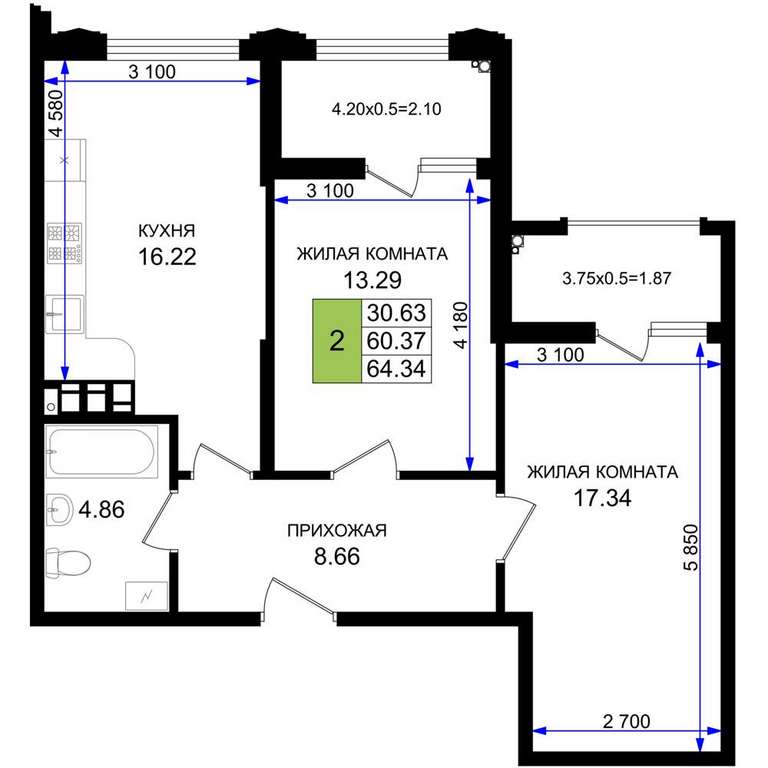 - 64.34 м2