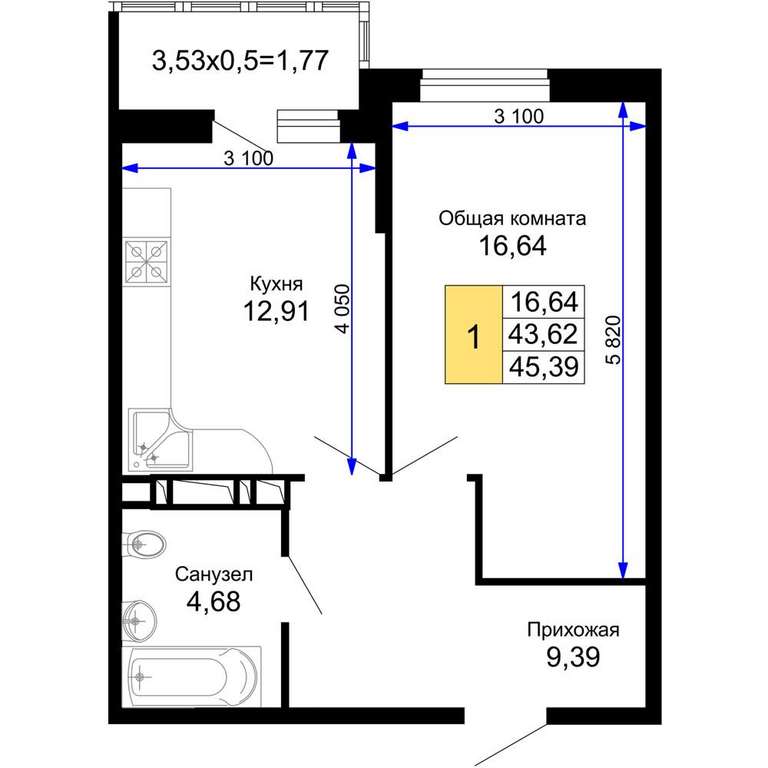 Продается 1-комн. квартира, площадью 45.39 м2 в монолитной новостройке. Возможен вариант покупки с использованием ипотечных средств, есть рассрочка, возможна покупка с использованием материнского капитала, есть военная ипотека.