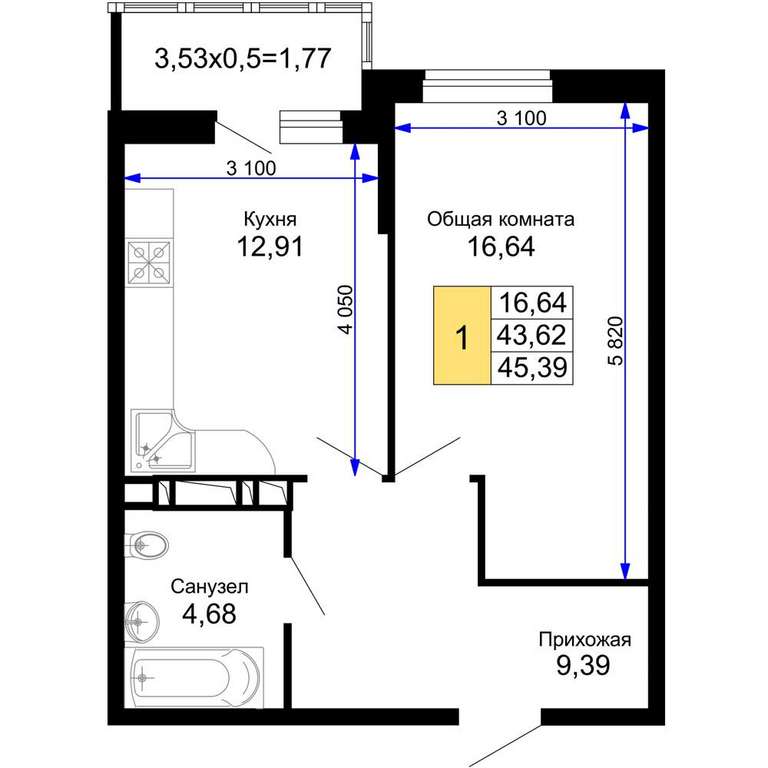 - 45.39 м2