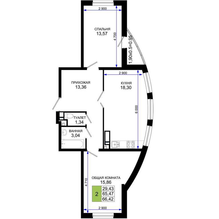 - 66.42 м2