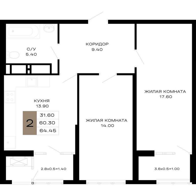 - 64.45 м2