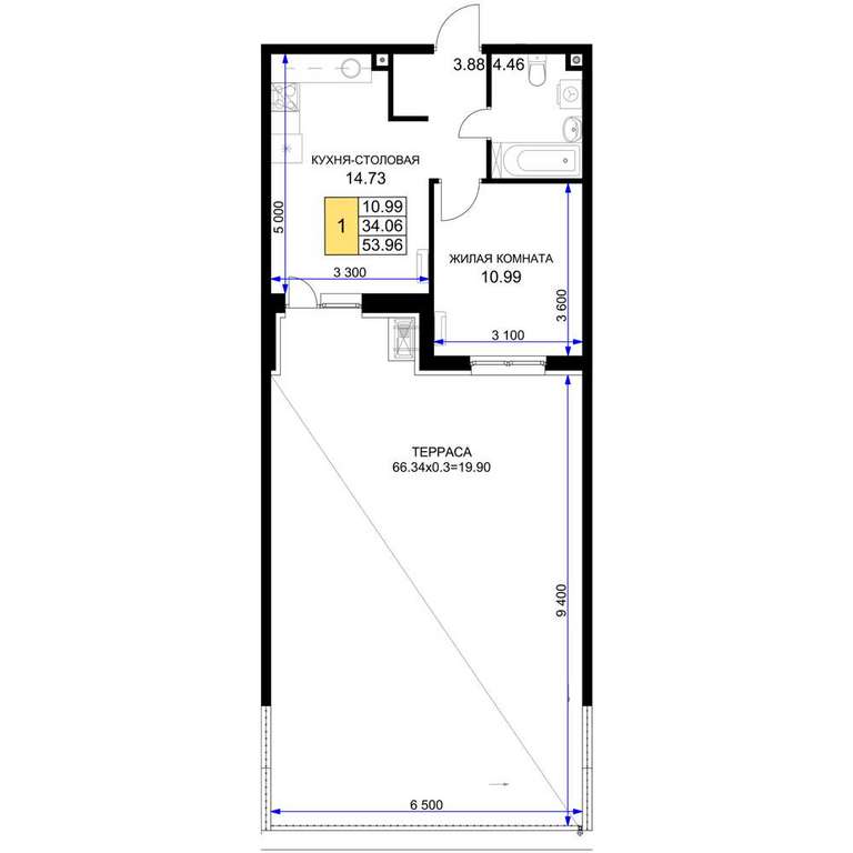 - 53.96 м2