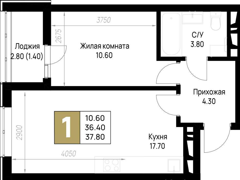 Жилая площадь 10.6 м2, кухня 17.7 м2, предчистовая отделка, комнаты изолированные.