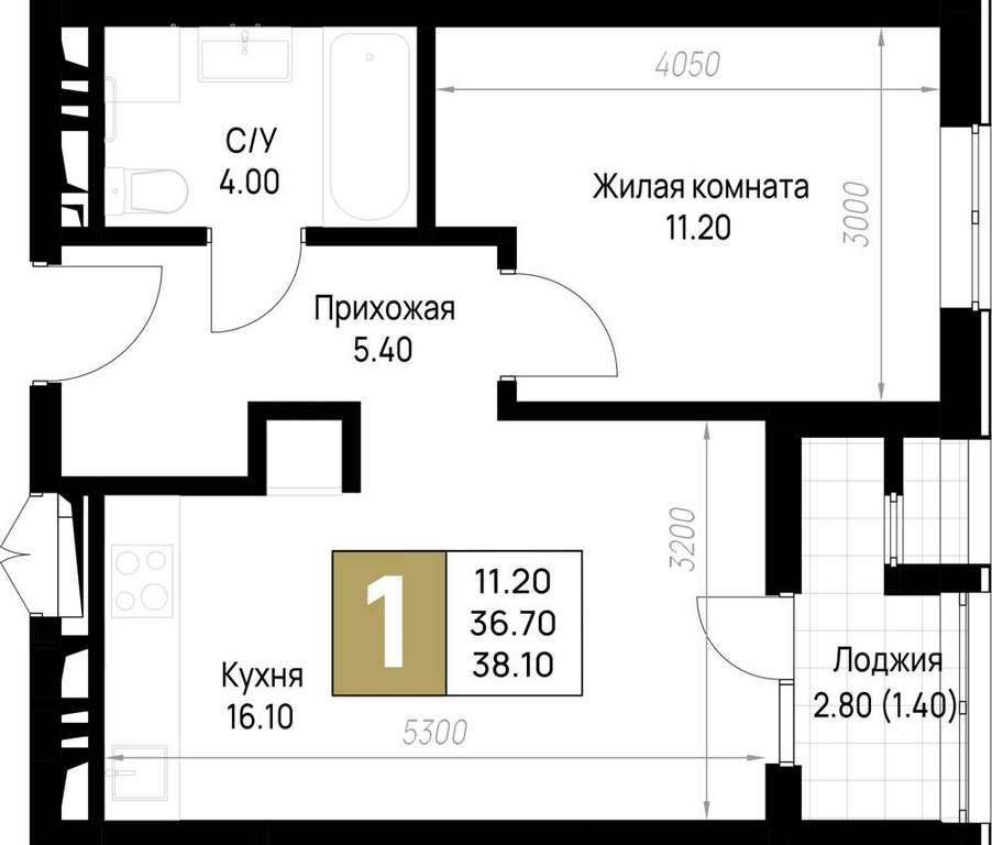 Жилая площадь 11.2 м2, кухня 16.1 м2, предчистовая отделка, комнаты изолированные.