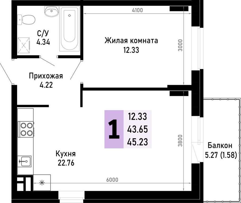 Продается 1-комн. квартира, площадью 45.23 м2 в монолитно-кирпичной новостройке. Возможен вариант покупки с использованием ипотечных средств, есть рассрочка, возможна покупка с использованием материнского капитала.