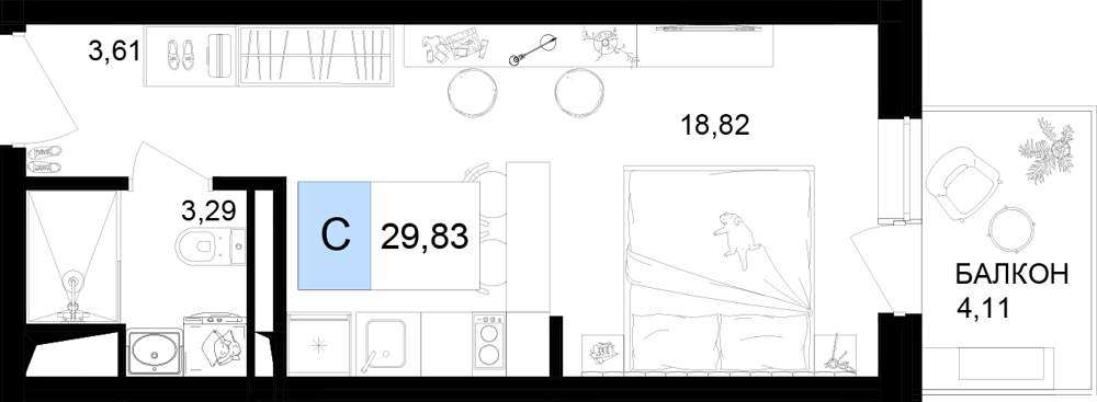 - 29.83 м2
