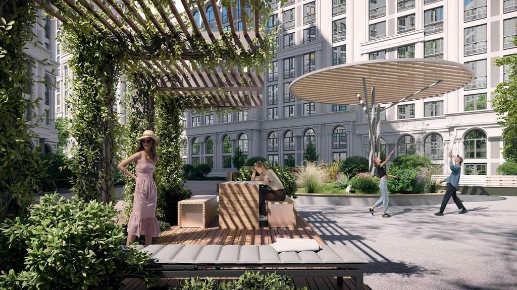 Подземная парковка, парковка охраняется. Обеспечение безопасности: видеонаблюдение, пропускная система. Инфраструктура: детские площадки, спортивные площадки, супермаркет, рестораны, фитнес-центр, пункты бытового обслуживания, коммерческие объекты.