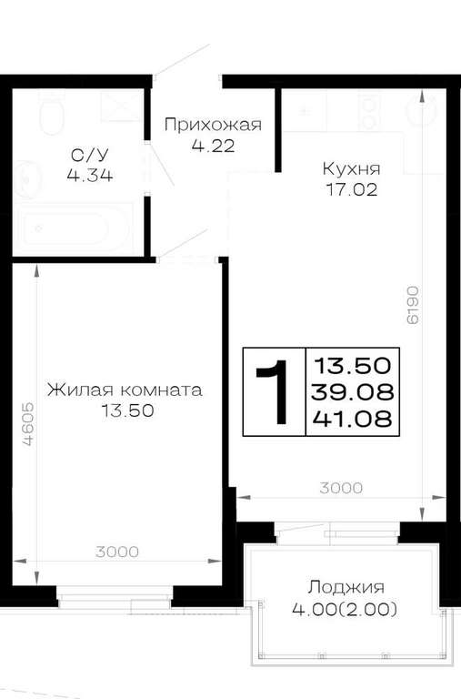 Жилая площадь 13.5 м2, кухня 17.02 м2, предчистовая отделка, комнаты изолированные.