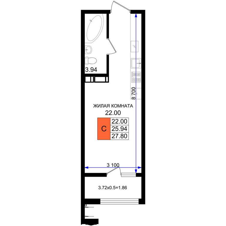 - 27.80 м2