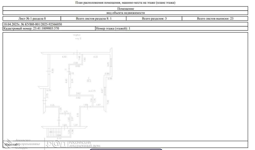 Юридическое лицо реализует нежилое встроенное помещение в центральной части города Горячий Ключ, в 250 м от ул. Ленина, являющейся одной из центральных улиц, по адресу: Краснодарский край, г. Горячий Ключ, ул. Л. Тараника, д. 15, офис 11. Объект, общей площадью 35,2 кв. м расположен в подвале 7-ми этажного кирпичного жилого дома (2010 г постройки) , в окружении частной и малоэтажной жилой застройки. Район расположения объекта характеризуется общественно-деловой застройкой: администрация города, ТЦ Планета развлечений, ЗАГс, отделение почты, магазины, кафе, аптеки, медицинские учреждения, детские сады. Помещение, наименование: офис № 11, площадью 35.2 кв. м, вход общий, высота потолков 2,74 м, без отделки, требуется гидроизоляция. Коммуникации: электричество; трубы водоснабжения и канализации проходят под потолком. КН: 23: 41: 1009003: 370. Хорошая транспортная доступность общественным и автомобильным транспортом. В шаговой доступности остановка общественного транспорта. Полное описание лотов, ограничения и обременения указаны в Информационном сообщении. Продажа осуществляется на площадке ЭТП РАД посредством публичного предложения.