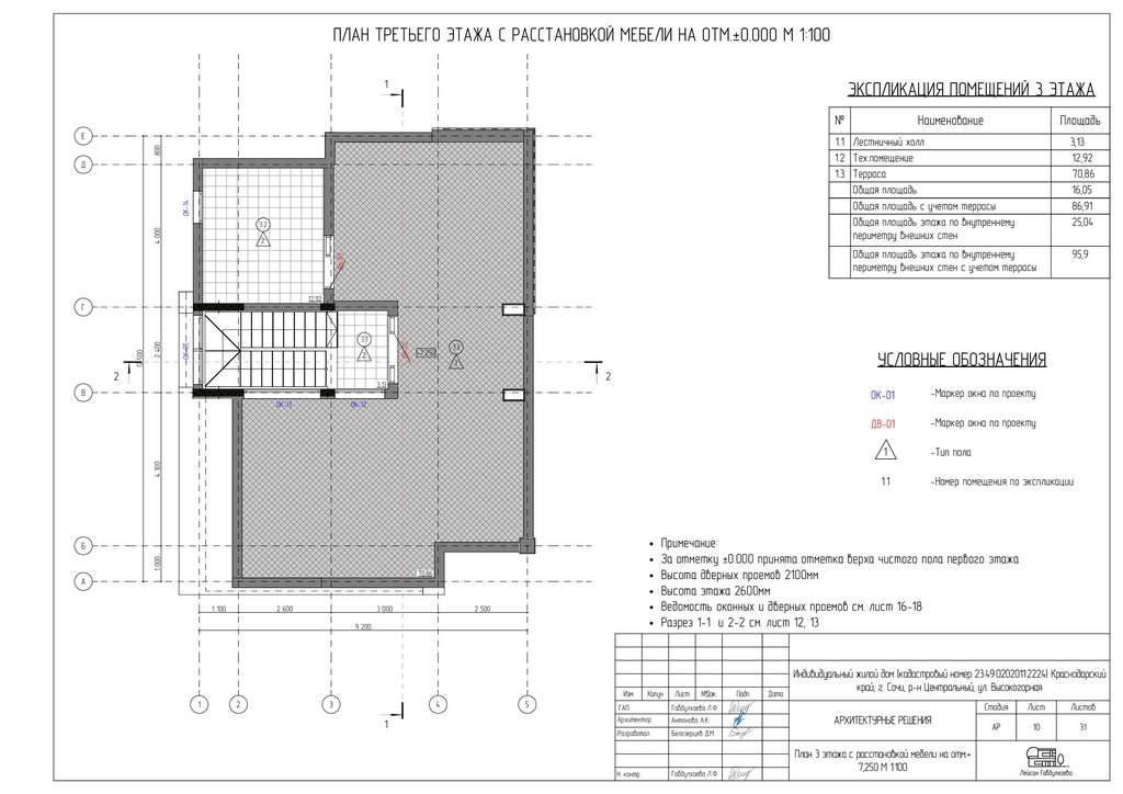 На третьем этаже техническое помещение и зона отдыха, лаунж с видом на море и горы.