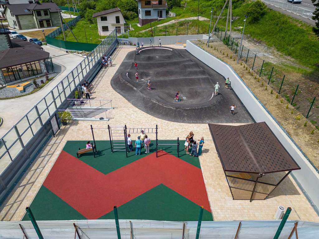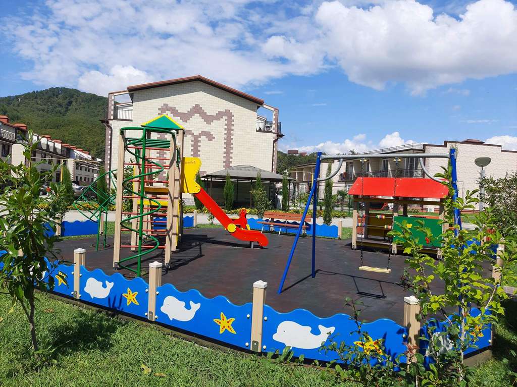 Территория закрытая. Выполнено благоустройство и озеленение, оборудованы детские, спортивные и игровые площадки.