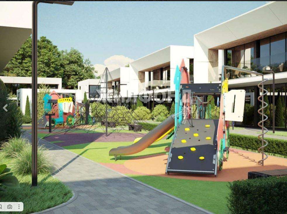 На территории- Большой подогреваемый бассейн, Сауна со своими раздевалками, душевыми и санузлом, Патио и лаунж зона, Зона воркаут, Современный детский городок со своим веревочным лагерем, Парковка, Просторная прогулочная зона, Ландшафтное озеленение и авторская подцветка