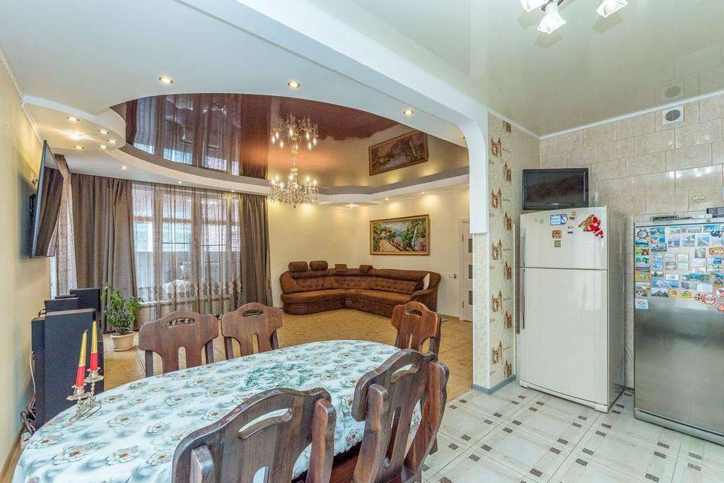 Арт. 89873899. Шикарный новый одноэтажный дом с хорошей отделкой, расположен в тихом экологически чистом районе города, подведены все коммуникации- центральные, отличная придомовая территория со стоянкой на несколько машин и садом с плодовыми деревьями, грядка клубники, во дворе пробурена скважина 8 метров для хоз нужд. На первом этаже зал+кухня 50 кв м, спальня-12кв м, спальня-17кв м. В дом заведен 3-х фазный ток, совмещенный санузел. Звоните.