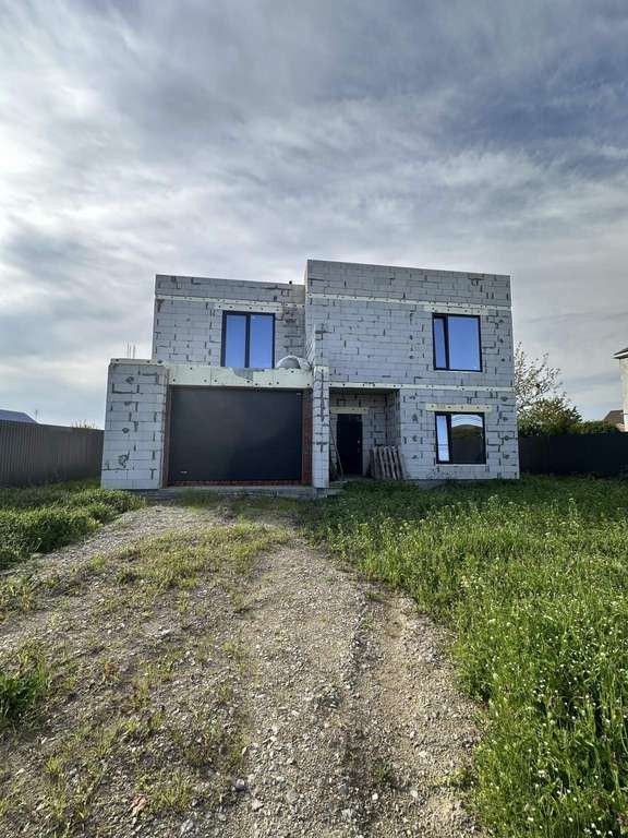 В доме на первом этаже имеется гараж, котельная, санузел и большая кухня-гостиная, на втором этаже санузел, гардеробная и три спальных комнаты. Газ проведен до границы участка. В комнатах установлены большие алюминиевые энергосберегающие окна, так же имеются раздвижные порталы на 1 и 2 этажах. Дом без внутренней и наружней отделки, проект прилагается. Так же имеется проект отопления и водоснабжения.