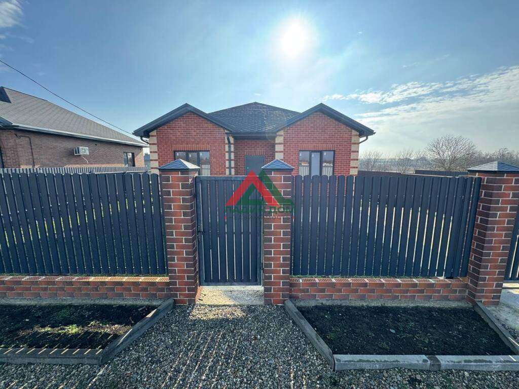 Земельный участок 4 сотки, огорожен забором фасадная часть из евроштакета, установлены откатные ворота, парковка для автомобиля, залита отмостка по периметру дома.