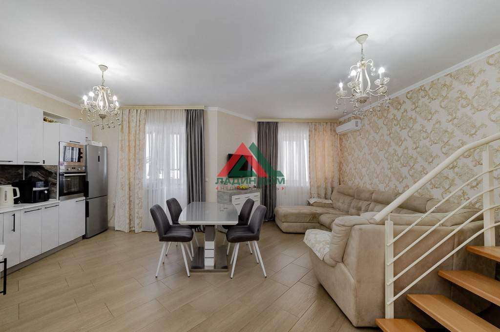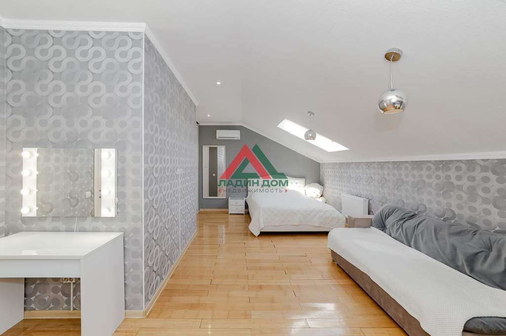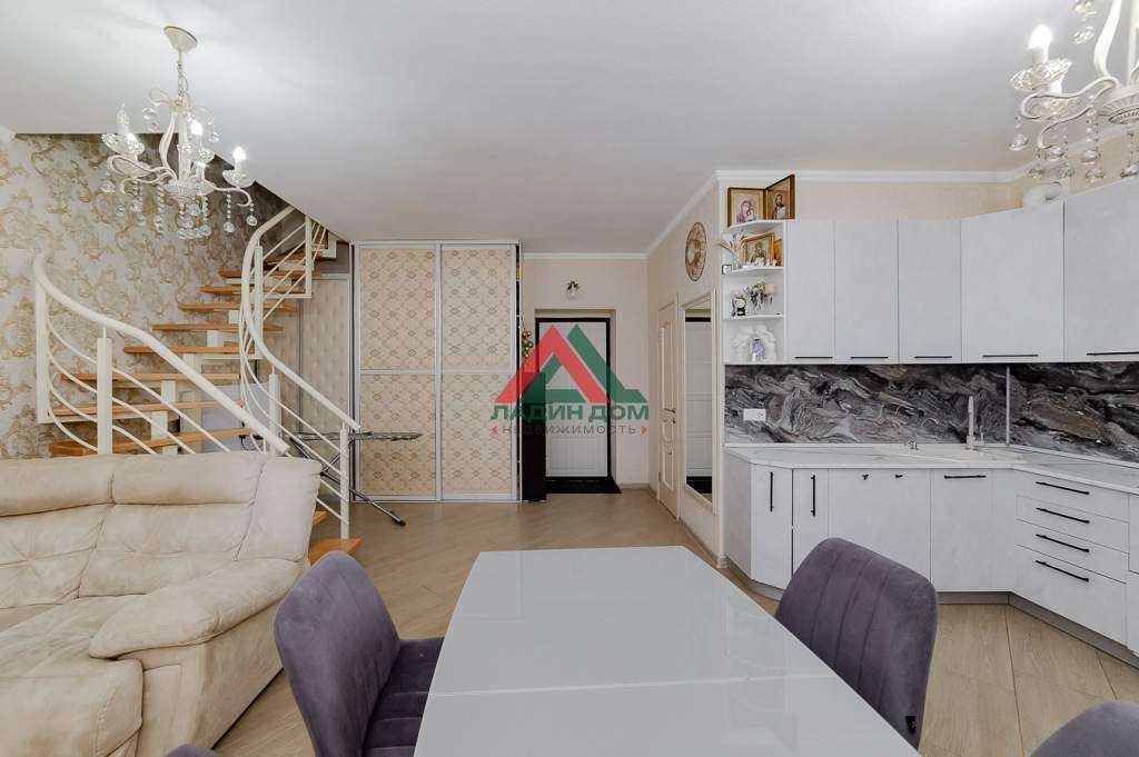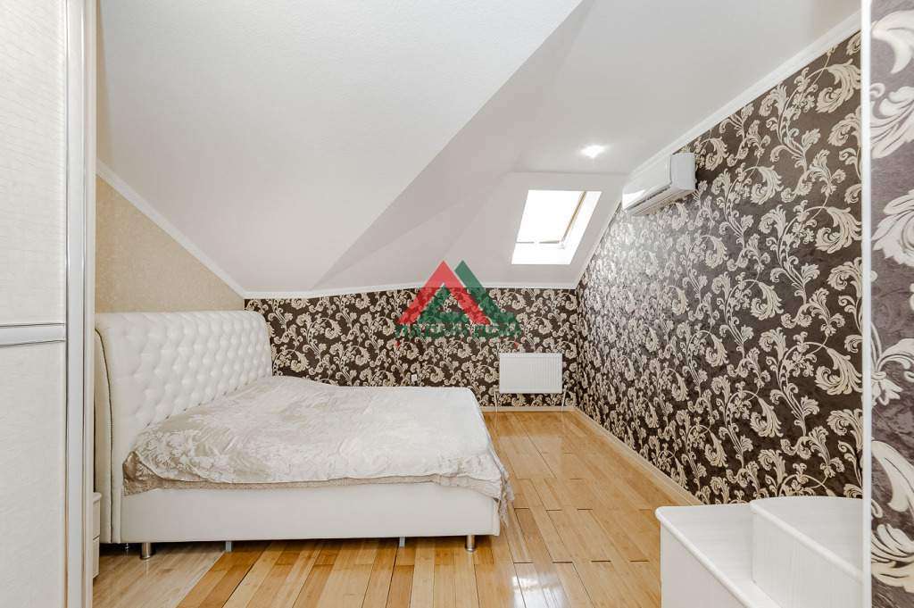 Предусмотрены два комфортабельных санузла с современной сантехникой, оснащённые душевой кабинкой и ванной. Отличительной особенностью являются панорамные окна верхних помещений, открывающие захватывающий вид на звёздное ночное небо. Качественный современный евро-тех ремонт и встроенная мебель позволит новосёлам комфортно жить и отдыхать без дополнительной отделки и ремонта. По отдельной договоренности можно оставить бытовую технику и остальную мебель. В комнатах предусмотрено большое количество встроенных гардеробных для хранения вещей. Балкон остеклен, выходит во двор.