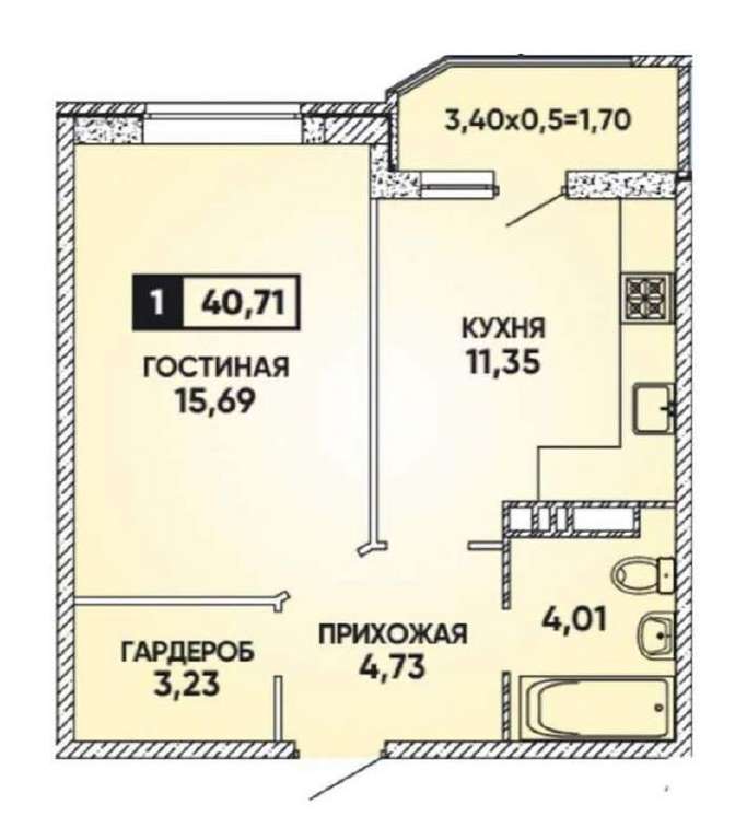 Продажа 1-комнатной квартиры, Краснодар, им. Героя Яцкова И.В. ул., Д.15 к.2, Краснодарский край