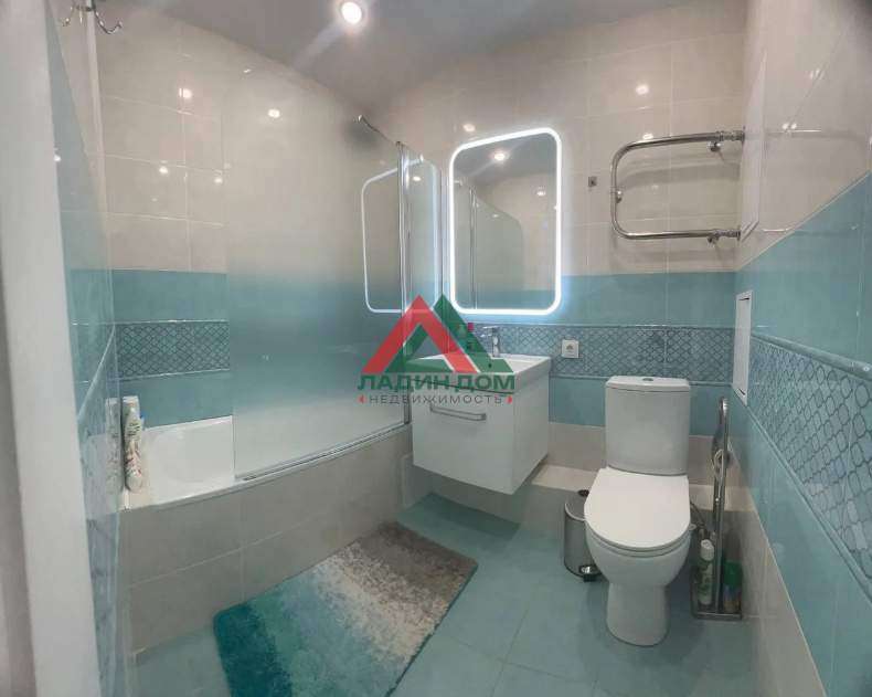 - Совмещенный санузел, разделён на зоны стеклянной перегородкой.