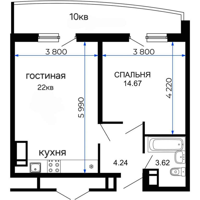 Площадь квартиры 44,3 кв м + 10кв м лоджия. Над квартирой полноценный технический этаж.