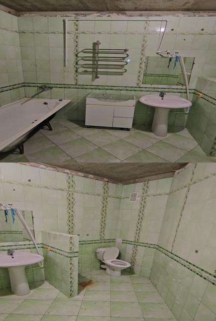 Санузел оборудован системой энергоснабжения, электроосвещения, горячим и холодным водоснабжением. Стены и пол выложены керамической плиткой, потолок бетонный.