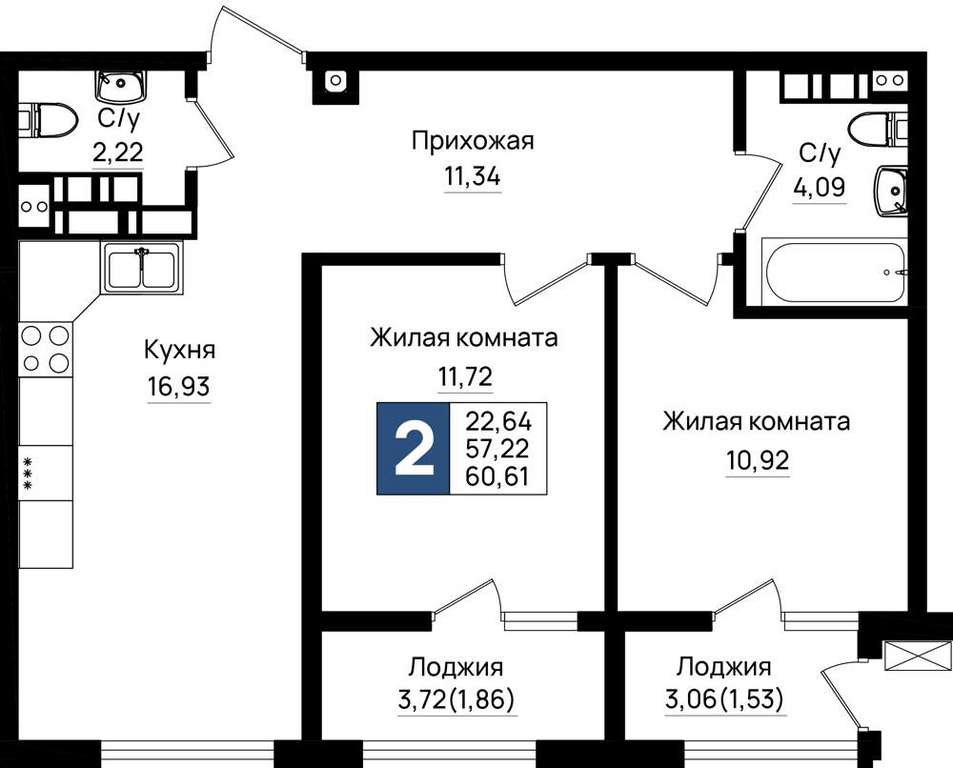 - 60.61 м2