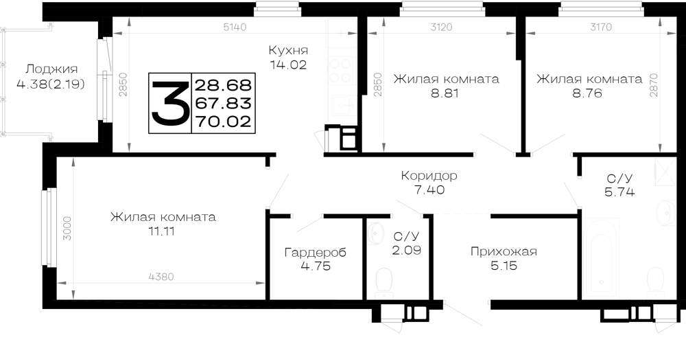 - 70.02 м2
