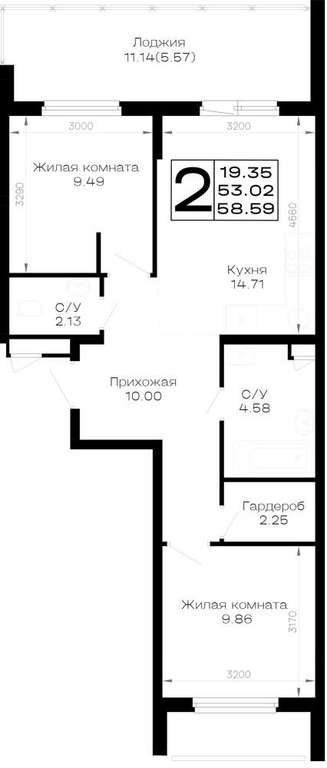 - 58.59 м2