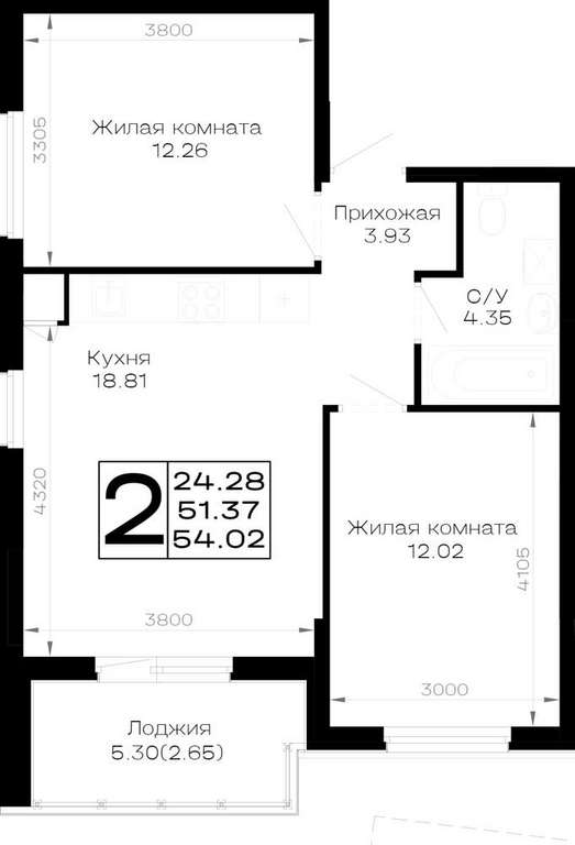 Жилая площадь 24.28 м2, кухня 18.81 м2, предчистовая отделка.